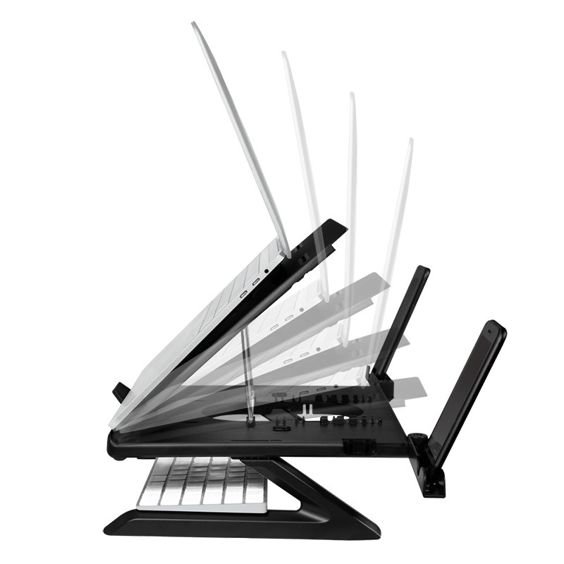 - Nouă poziții diferite pentru ajustarea înălțimii și unghiului laptopului