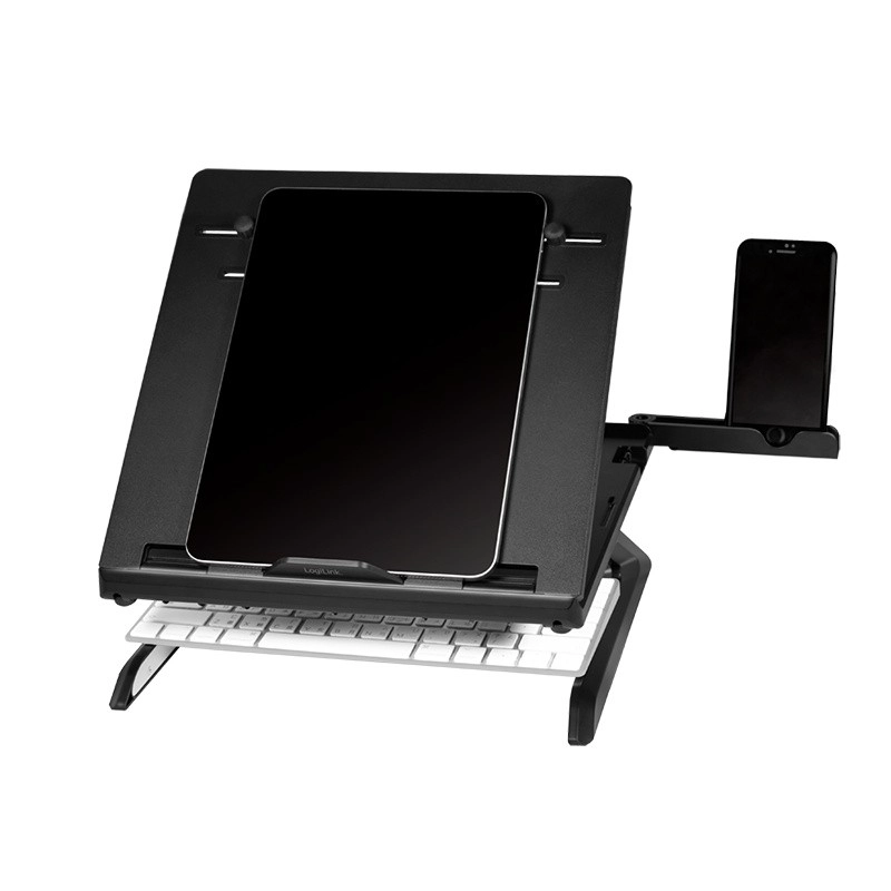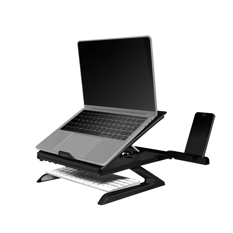 Suport ergonomic pentru laptop cu suport pentru smartphone oferă nouă poziții ajustabile pentru unghiul optim de vizualizare și construcție ventilată pentru o mai bună circulație a aerului.