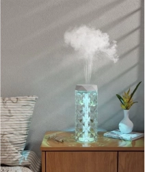 Combină funcția de umidificator de aer și lampa LED de noapte, îmbunătățind calitatea aerului și creând o atmosferă plăcută.
