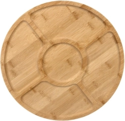 Platoul rotativ din bambus pentru servire este alegerea ideală pentru a servi brânzeturi, gustări și mezeluri. Datorită designului său stilat și finisajului de calitate, va deveni piesa de decor a oricărei mese.