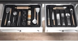 Compartimentarea clară pentru tacâmuri și ustensile de bucătărie grăbește gătitul și îmbunătățește organizarea muncii zilnice în bucătărie.