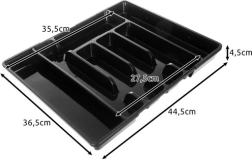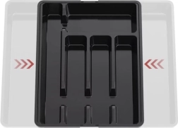 În setarea de bază oferă 5 compartimente, iar după extindere până la 7, obținând mai mult spațiu pentru tacâmuri și ustensile de bucătărie. Suprafața netedă se șterge cu o cârpă umedă – rapid și igienic.