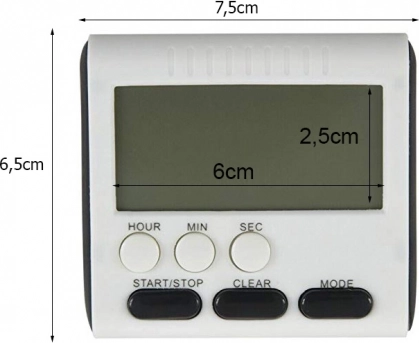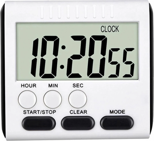 - Control ușor: butoane HOUR/MIN/SEC + START/STOP + CLEAR + MODE