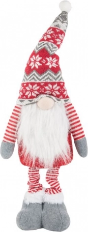 Un spiriduș scandinav stilat, în tonuri de roșu, cu căciulă tricotată lungă, barbă albă pufoasă și mâneci în dungi, este decorația ideală pentru sezonul rece. Înălțimea reglabilă 50–70 cm îți permite să potrivești figurina locului în care va arăta cel mai bine – de la pervaz la polița șemineului.