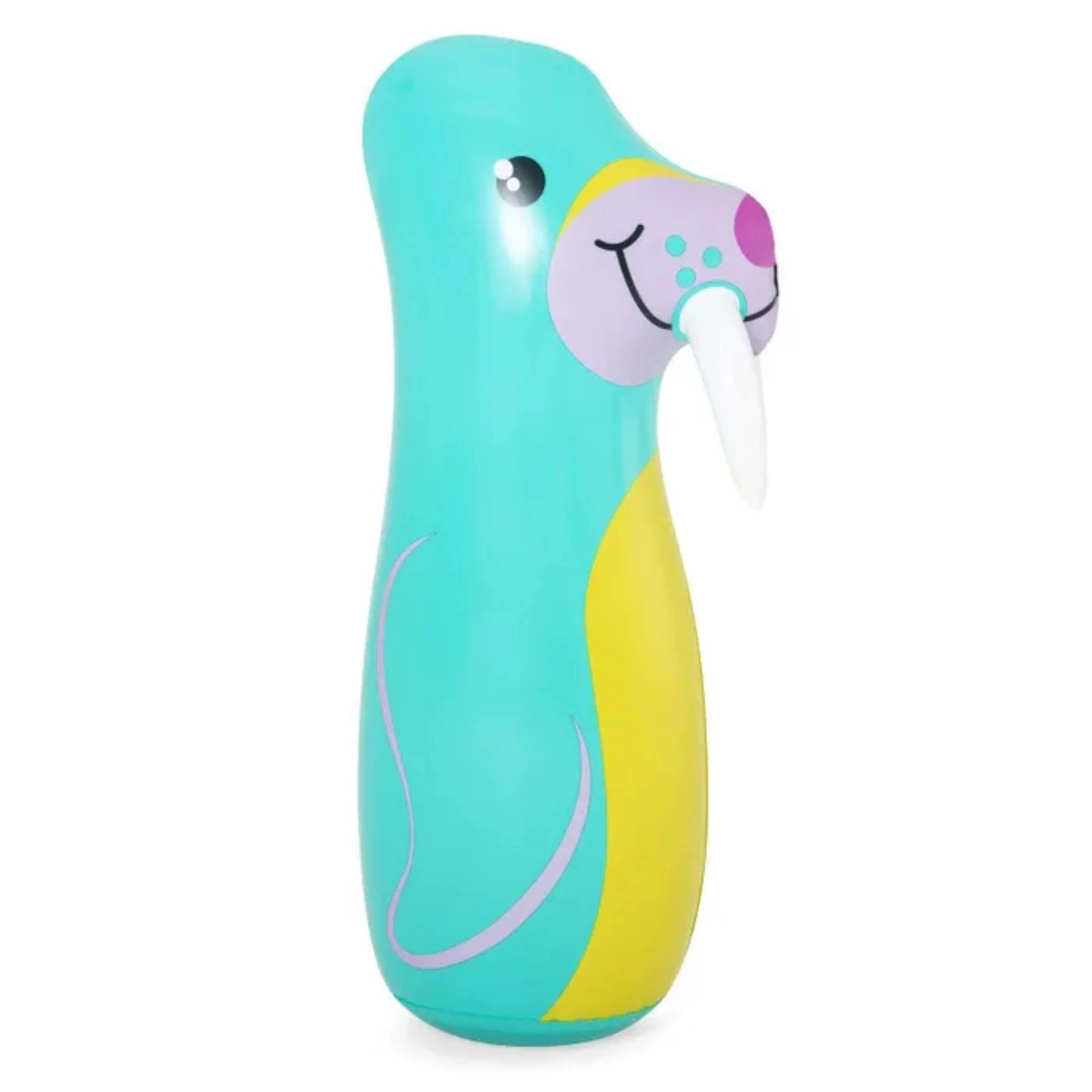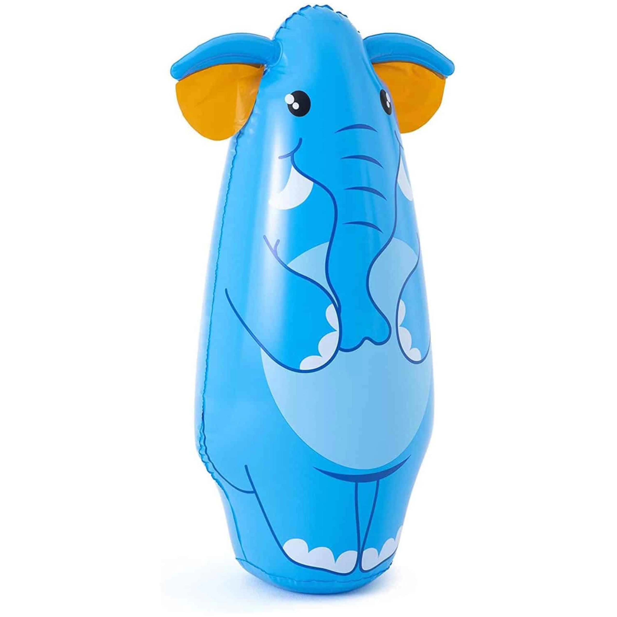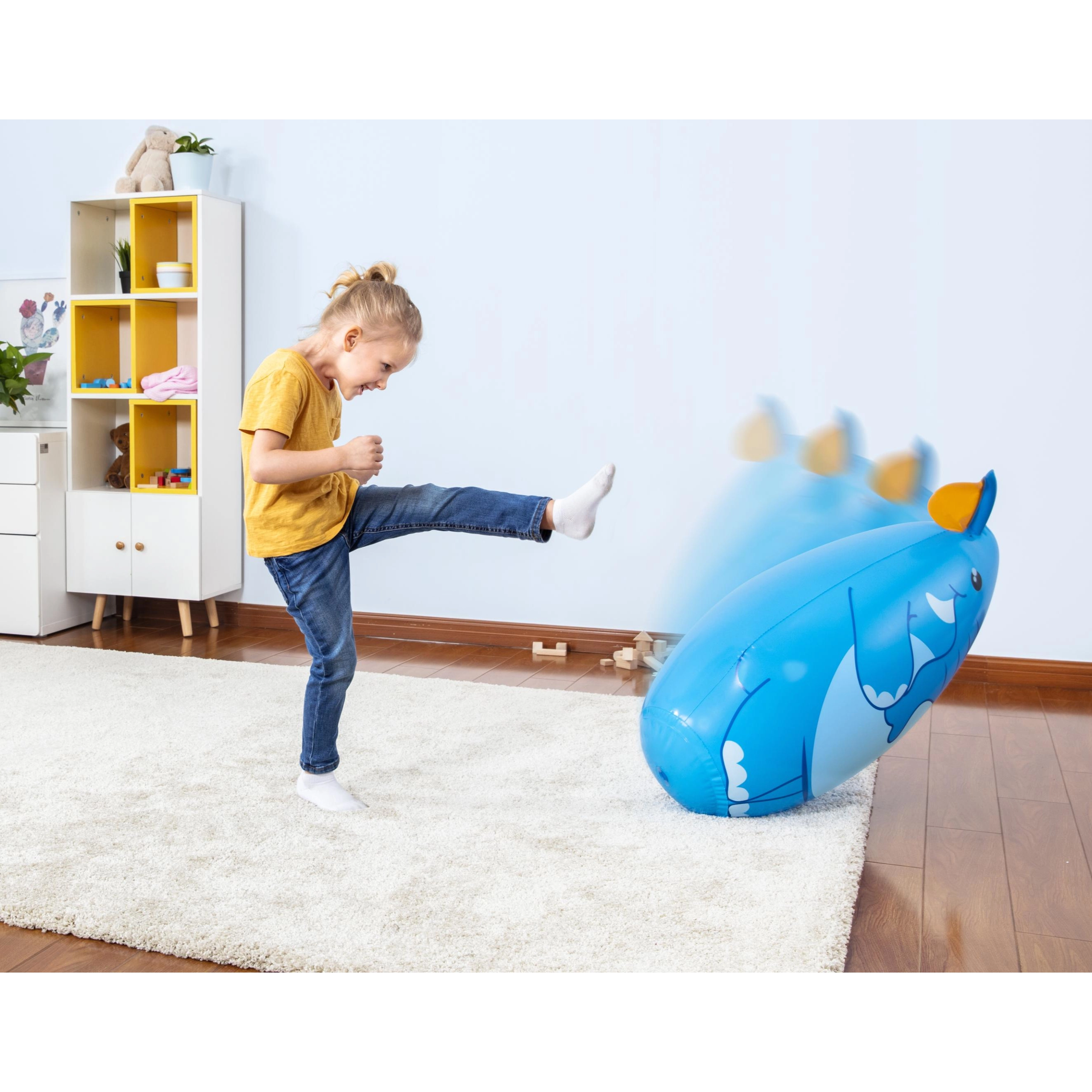 Sacul de box gonflabil – girafă este ideal pentru copiii activi de la 3 ani. După umplerea camerei inferioare cu apă, după fiecare lovitură sau șut se redresează automat, încurajând mișcarea și antrenând echilibrul, viteza și coordonarea mână–ochi. Designul vesel al girafei motivează la joacă și înseninează orice cameră de copil.