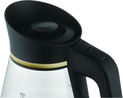 Fierbătorul PRIME3, stilat și performant, îmbină corpul elegant, transparent, din sticlă borosilicată cu accente negru-aurii, integrându-se perfect într-o bucătărie modernă. Capacitatea de 1,5 l, cu umplere minimă de 0,5 l, permite încălzirea rapidă a cantității exacte de apă, economisind timp și energie. Indicatorul vizibil al nivelului apei facilitează controlul și dozarea precisă.