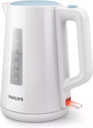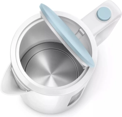 Fierbătorul electric Philips îți permite să pregătești băuturi calde ușor și rapid. Este echipat cu un element de încălzire ascuns din oțel inoxidabil care permite o fierbere rapidă și curățare ușoară. Datorită sistemului de siguranță, fierbătorul se oprește automat dacă este gol, iar indicatorul iluminat semnalizează când fierbătorul este pornit.