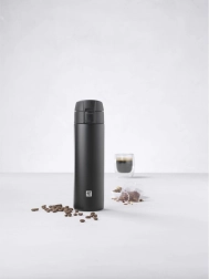 Minimalistă și rezistentă, cana termică ZWILLING Thermo în finisaj negru mat combină izolația de top cu o ergonomie bine gândită. Capacul practic cu buton se deschide dintr-o singură apăsare, blocarea previne scurgerile în timpul transportului, iar întregul capac se poate dezasambla ușor pentru curățare amănunțită.