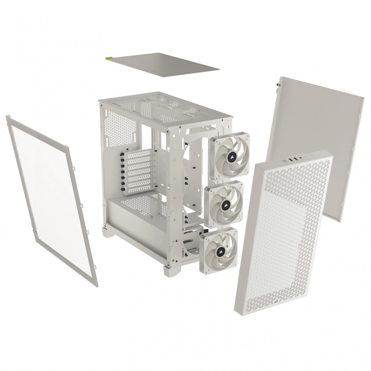 Carcasă mid-tower CORSAIR 3000D RGB din sticlă securizată, albă