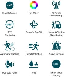 Afișaj excelent 4G în culori vii cu monitorizare 24/7, indiferent de întuneric. Datorită instalării ușoare și acoperirii de 360°, această cameră este soluția ideală pentru monitorizare fără conectare la internet.