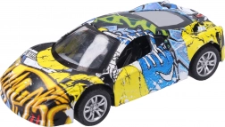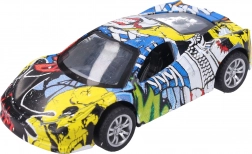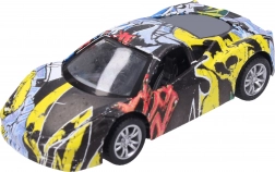 Descoperă distracția cu mașinuța metalică cu imprimeu graffiti unic. Datorită execuției de calitate și mecanismului practic cu întoarcere, este ideală pentru curse acasă și ca accesoriu stilat pentru colecție.