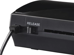 Designul elegant negru se potrivește în orice mediu, cu un buton de eliberare și cablu pentru manipularea ușoară a documentelor.