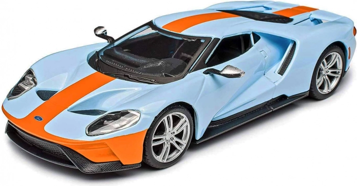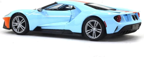 Acest model Bburago, realizat cu atenție la detalii, aduce în colecția ta legendarul Ford GT într-o combinație atractivă de albastru deschis cu dungi portocalii de curse. Datorită metalului die-cast de calitate și proporțiilor precise, modelul are un aspect foarte realist și evidențiază orice raft sau vitrină.
