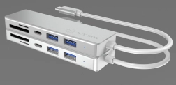 Maximizează conectivitatea printr-un singur port cu acest hub USB‑C multi‑port. Primești 3× USB 3.0 pentru conectarea perifericelor, a discurilor externe sau a stick‑urilor USB și un cititor de carduri SD/microSD integrat pentru transfer rapid de fotografii și date. Dispozitivul este alimentat direct de la USB‑C, astfel că nu ai nevoie de niciun adaptor extern.