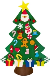 Material durabil și rezistent: Bradul și ornamentele sunt fabricate din fetru de înaltă calitate, rezistent la șifonare și rupere, permițând utilizarea repetată timp de multe sezoane.