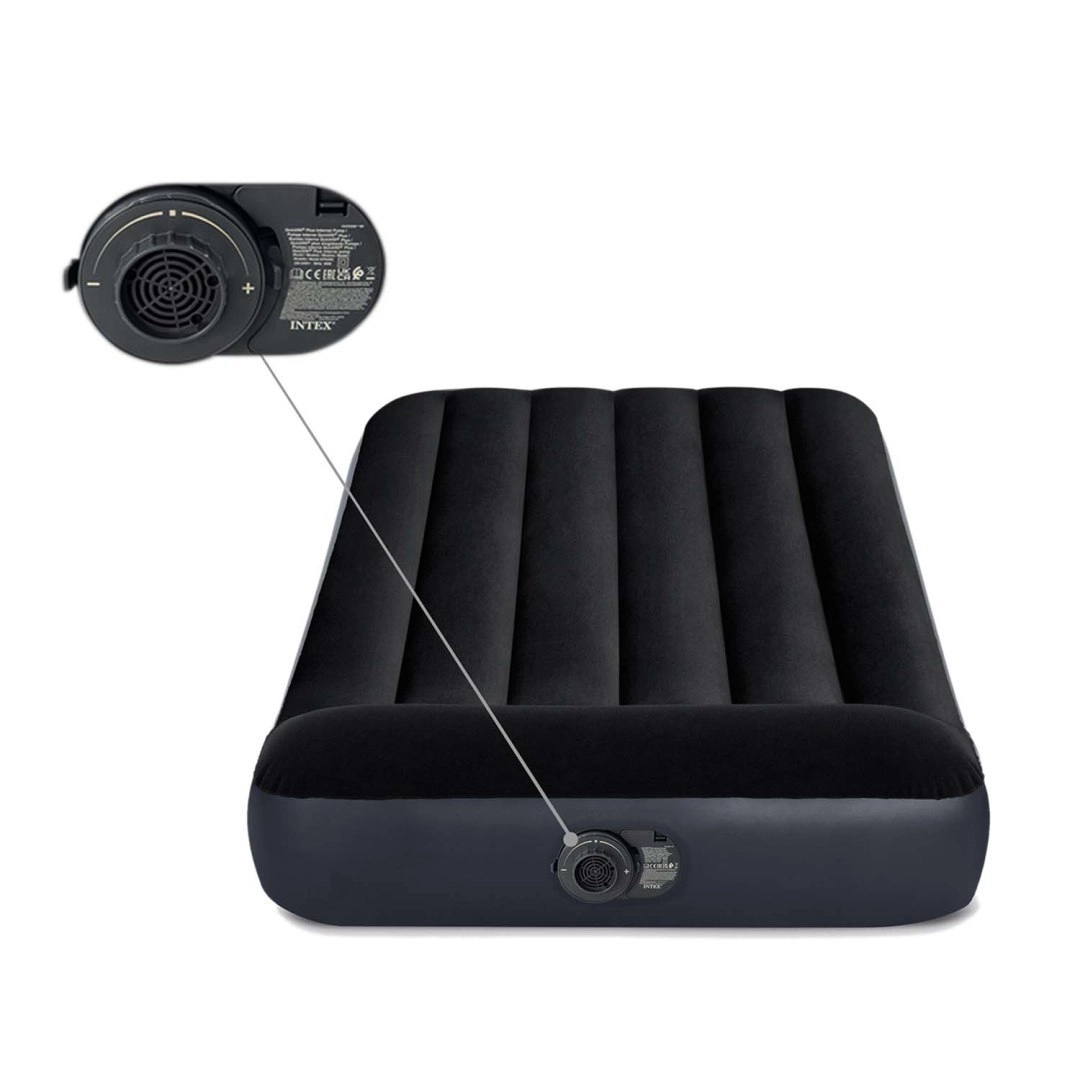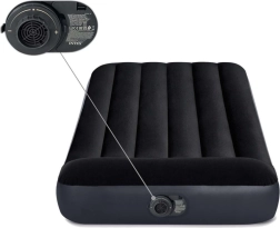 Salteaua gonflabilă practică INTEX pentru o singură persoană oferă dimensiuni de 191 × 99 × 25 cm, pompă electrică integrată pentru umflare și dezumflare rapidă, o suprafață catifelată (velur) plăcută la atingere și o construcție durabilă Fiber-Tech/Dura-Beam. Ideală acasă și în călătorii, cu capacitate maximă de 136 kg și pernă modelată pentru un confort sporit.