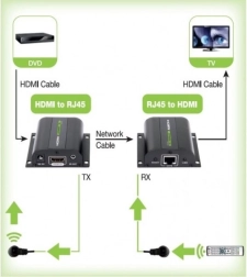 Extindeți semnalul HDMI ușor și fără pierderi de calitate. Acest extender utilizează cabluri de rețea RJ45 obișnuite și oferă transmisie stabilă a imaginii și sunetului până la 60 de metri, în rezoluție Full HD. Datorită canalului IR de retur, puteți controla comod sursa (de ex. DVD/mediabox) direct de lângă TV sau monitor.