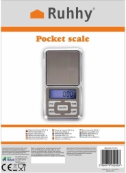 Cântarul de buzunar compact RUHHY oferă precizie de 0,1 g și capacitate de până la 500 g, ideal pentru bijuterii, monede, ierburi sau medicamente. Are ecran LCD iluminat, funcție TARE, mai multe unități de măsură și oprire automată. Datorită capacului de protecție și alimentării cu 2× AAA (incluse), este gata de utilizare imediat după despachetare.