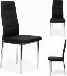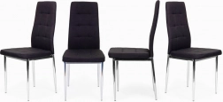 Înfrumusețează-ți casa cu acest set de patru scaune negre moderne cu picioare cromate, proiectate pentru a oferi un loc de ședere stilat și confortabil. Aceste scaune se potrivesc ușor cu orice masă de familie și, datorită designului elegant din piele ecologică neagră, adaugă un strop de rafinament interiorului tău. Sunt alegerea ideală pentru cei care caută soluții moderne fără a compromite confortul.