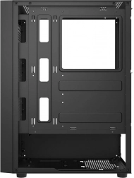 Estetica sistemului dumneavoastră este accentuată de panoul lateral din sticlă temperată, ideal pentru componentele cu iluminare. Finisajul modern al carcasei adaugă atracție vizuală și filtrul de praf practic asigură întreținerea ușoară a curățeniei echipamentului dumneavoastră.