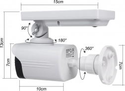 Macheta solară de cameră de securitate combină un aspect realist cu iluminare LED practică, care se activează automat la detectarea mișcării. Panoul integrat este reglabil, astfel încât valorifici ușor la maximum energia solară și obții o soluție wireless, fără întreținere, pentru securitate în aer liber.