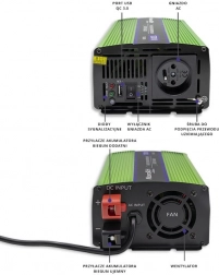 Invertorul de tensiune Qoltec nu servește doar ca invertor de 12V la 230V, ci și ca încărcător de acumulatori și surse UPS. Când este conectat la un acumulator, oferă alimentare stabilă aparatelor conectate. În cazul unei pene de curent, trece automat la alimentarea de la acumulator. Datorită sinusului pur, asigură siguranța tuturor dispozitivelor conectate, făcându-l ideal pentru călătorii sau situații fără disponibilitatea unei prize.