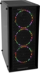 iBOX CETUS 903 este o carcasă PC atrăgătoare pentru jucători și entuziaști care doresc să-și prezinte componentele prin panoul lateral din sticlă securizată și, în același timp, să mențină temperaturi scăzute. Panoul frontal cu trei ventilatoare LED de 120 mm, în combinație cu ventilatorul posterior de 120 mm, asigură un flux de aer lin și o răcire fiabilă.
