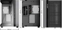 Panourile transparente mari din față și lateral oferă o vedere panoramică excelentă asupra tuturor componentelor PC-ului.
