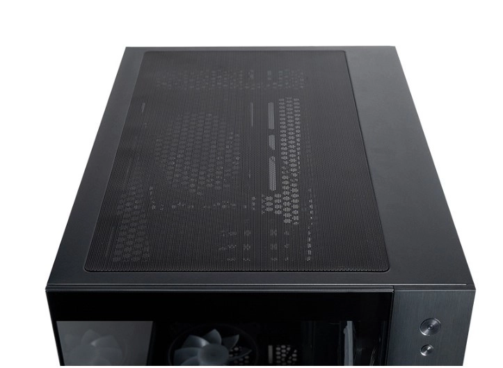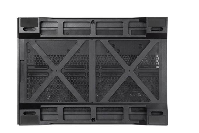 Cinci ventilatoare cu pale pentru flux invers asigură admisia eficientă din laterale și din partea de jos. Suport pentru radiatoare de 360 mm sus și jos, și 240 mm lângă placa de bază.