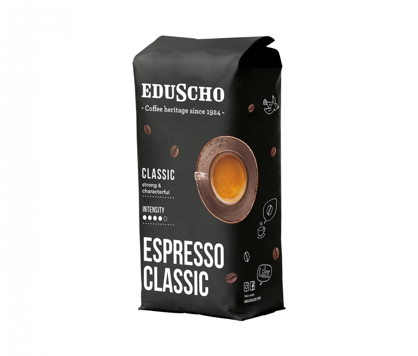 Cafeaua boabe Eduscho Espresso Classic este alegerea perfectă pentru iubitorii gustului intens. Espresso-ul nostru îmbină cele mai bune boabe de Arabica și Robusta, garantând o experiență puternică și caracteristică la fiecare ceașcă.
