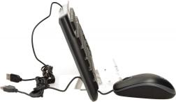 Mouse-ul cu senzor optic de 1000 dpi oferă control lin și precis al cursorului. Ambele dispozitive se conectează în câteva clipe prin USB Plug & Play, fără instalarea driverelor. Construcția tastaturii este rezistentă la stropire, iar picioarele rabatabile permit setarea unui unghi de 8° pentru confort la tastare.