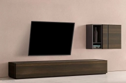 Soluție elegantă și economă de spațiu pentru interioare moderne. TV-ul pare o parte firească a peretelui, fără spații inutile.