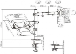 Îmbunătățește ergonomia spațiului tău de lucru. Brațul reglabil se adaptează ușor preferințelor tale – permite rotire în intervalul ±180°, înclinare ±25° și rotirea monitorului pe verticală, astfel încât treci rapid din orientare orizontală în verticală. Platforma metalică pentru laptop, cu orificii de ventilație, îmbunătățește răcirea și stabilitatea dispozitivului.