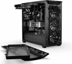 Cele trei ventilatoare Pure Wings 3 140 mm PWM preinstalate oferă un flux de aer ridicat la un nivel redus de zgomot – chiar și la turații mai mari funcționarea rămâne rafinată. Nu lipsesc instalarea ușoară fără unelte a unităților, managementul cablurilor bine gândit și filtrul de praf detașabil pentru întreținere simplă.