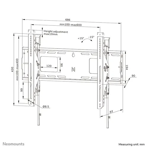 Datorită înclinării fără unelte de +15°/-15°, setați rapid unghiul ideal de vizionare. Consolele ajustabile individual (±10 mm) facilitează alinierea pe înălțime și înclinarea orizontală, astfel încât montajul să fie precis chiar și pe suprafețe mai puțin plane. Mecanismul de pull & release permite montarea și demontarea sigură a ecranului, în timp ce blocarea împotriva ridicării previne răsturnarea accidentală în timpul manipulării.