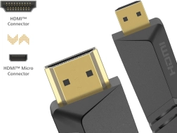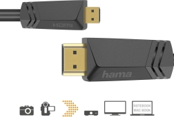Acest cablu HDMI – micro HDMI de înaltă calitate este ideal pentru conectarea camerelor video, aparatelor foto, tabletelor sau altor dispozitive la televizor, monitor sau proiector. Oferă reproducere fidelă a culorilor, contrast mai ridicat și claritate datorită HDR, astfel încât vă veți bucura de filme și seriale la o rezoluție 4K perfectă. Lățimea de bandă extinsă permite, de asemenea, transmisie 3D și spațiu de culoare de 30/36/48 biți.