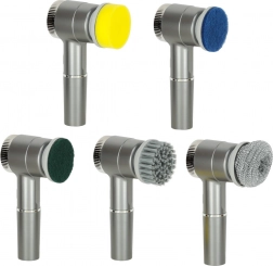 Setul de cinci capete acoperă toate scenariile de curățare: burete pentru lustruire, 2× pad textil pentru suprafețe sensibile, perie din nailon pentru rosturi și murdărie persistentă și racletă pentru depuneri. Mecanismul de prindere rapidă asigură schimbarea fulgerătoare a capetelor fără efort.