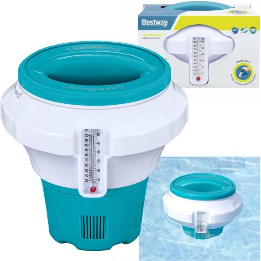 Dozatorul de substanțe chimice BESTWAY este un ajutor practic și indispensabil pentru orice proprietar de piscină. Acest dozator plutitor asigură distribuirea eficientă a substanțelor chimice, menținând curățenia și calitatea apei.