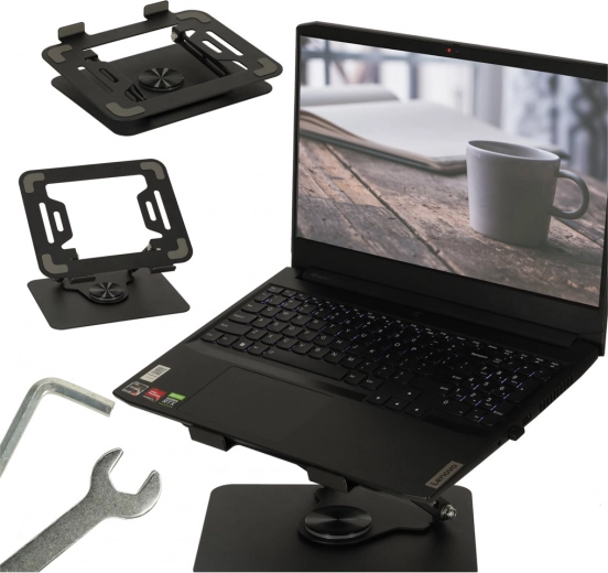 Standul poate fi rotit la 360°, oferind flexibilitate în poziționarea laptopului.