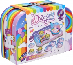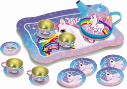 Un set de ceai fermecător într-o valiză drăgălașă cu motiv de unicorn va încânta orice mică gazdă. Conține o cană/ceainic, 4 cești, 4 farfuriuțe și 4 farfurii, toate din metal rezistent. Valiza practică cu mâner are dimensiunile 25 × 19 × 10 cm – ideală pentru călătorii și depozitare.