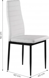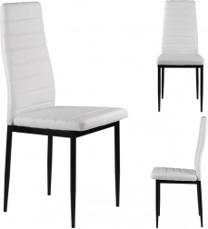 Setul nostru de scaune de sufragerie este proiectat pentru a completa perfect interiorul dumneavoastră. Îmbrăcămintea albă din eco-piele și picioarele negre drepte creează un design stilat și modern, care se potrivește oricărui tip de interior.