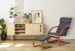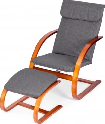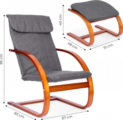 Suportul pentru picioare completează perfect scaunul, creând un ansamblu stilat potrivit pentru diverse interioare. Relaxați-vă în poziția preferată și bucurați-vă de momentele de liniște și pace.