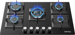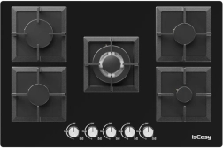 Aragazul pe gaz din sticlă IsEasy aduce în bucătăria ta un design modern și eficiență ridicată. Este echipat cu cinci arzătoare cu putere diferită: 1x 1 kW, 2x 1,75 kW, 1x 2,7 kW și 1x 3,3 kW, ceea ce permite gătirea mai multor feluri de mâncare în același timp.