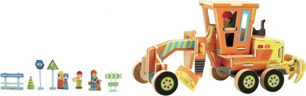 Piesele din placaj imprimat color sunt decupate cu precizie pentru îmbinare exactă și un aspect atrăgător al modelului utilajului de construcții.
