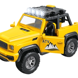 Mașina off-road îi va încânta pe micii pasionați prin detalii realiste și construcție rezistentă. La apăsarea butonului de pe acoperiș se activează efectele luminoase și sonore, care intensifică experiența de joc. Ușile laterale și hayonul spate deschizabile stimulează imaginația și scenariile inspirate din viața reală.