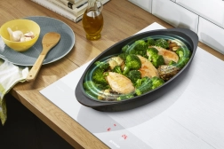Siguranța este pe primul loc: ChildLock (blocare pentru copii) previne pornirea accidentală, iar indicatorii de căldură reziduală avertizează clar unde suprafața este încă fierbinte. Mai mult, aceste zone pot fi folosite pentru menținerea temperaturii sau topire delicată. Se curăță ușor și se potrivește perfect cu o bucătărie modernă.