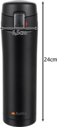 Cană termică RUHHY stilată și funcțională, alegerea ideală pentru utilizarea zilnică la muncă, la școală și în călătorii. Izolația dublă păstrează temperatura în mod fiabil, în timp ce capacul sigur cu siguranță previne deschiderea nedorită și scurgerile – chiar și la răsturnare. Designul elegant negru și construcția ușoară (doar 0,27 kg) asigură purtare confortabilă.