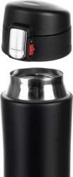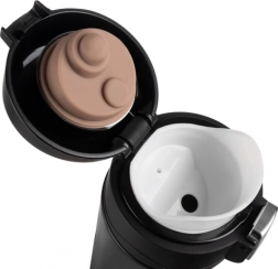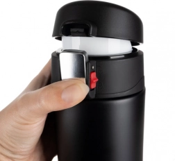 Deschiderea ușoară printr-un singur buton permite acces rapid la băutură, iar muștiucul igienic și confortabil face mai plăcut consumul în mișcare. Cana este realizată din materiale sigure (oțel inoxidabil și PP), este ușor de curățat și, datorită dimensiunilor universale, se potrivește în majoritatea suporturilor auto.