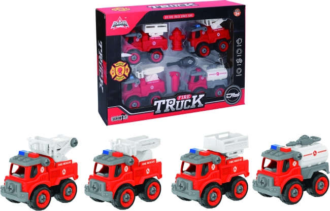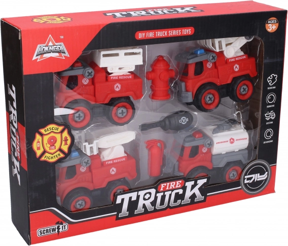 Acest set de 4 mașini de pompieri cu șuruburi oferă distracție grozavă și dezvoltă abilități motorice la copii. Mașinile sunt fabricate din plastic de calitate și sunt proiectate pentru a fi ușor de demontat și reasamblat.