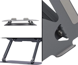 Înălțime și unghi ajustabile permit adaptarea ușoară a unghiului laptopului dumneavoastră, maximizând confortul dumneavoastră. Cu posibilitatea de a ridica laptopul până la 17 cm, asigură condiții optime de lucru.
